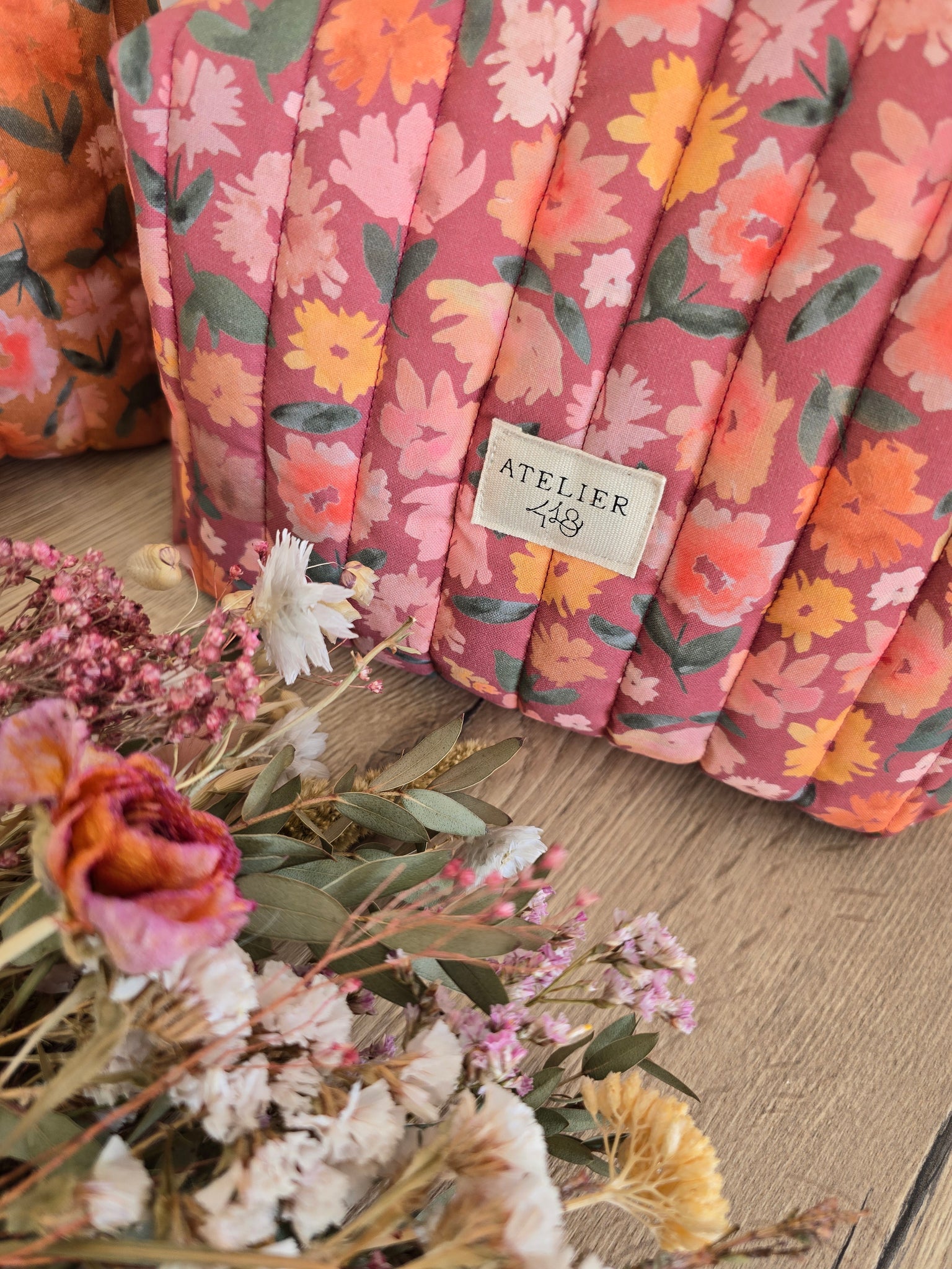 Cette charmante trousse de toilette à fleurs, matelassée et confectionnée avec soin, s'avère parfaite pour organiser votre maquillage, vos articles de toilette ou même les petites affaires de bébé telles que les couches et le liniment.