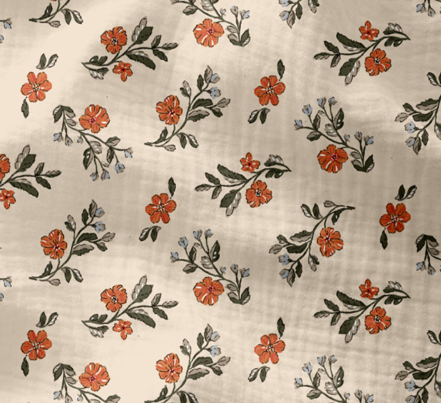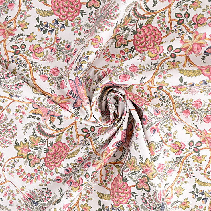 Ce motif fleuri exclusif* peint à l'aquarelle et designé en France a pris vie sur une toile premium, tissée et imprimée en Europe.